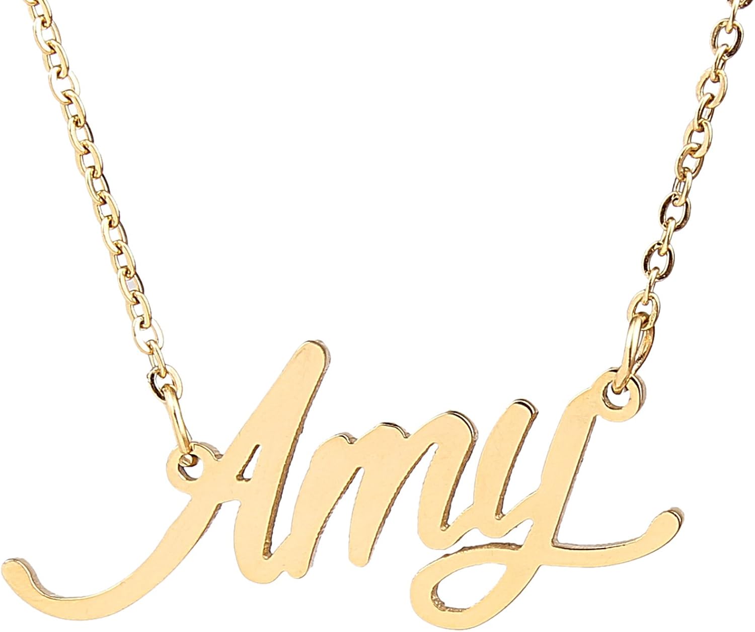 No Custom Amy Fashionable Dainty Cursive Curved Name Necklace