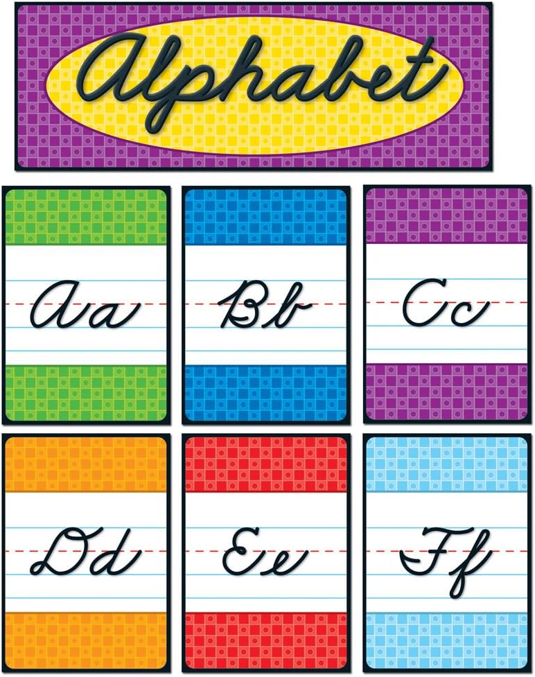 These cursive letter headers work great for a word wall or just as an anchor on a bulletin board for cursive printing. 49 1 64 each set 12 99 12 99. Argus modern cursive splashy colors alphabet line bulletin board sets t 8269 by my stamps us only 1 left in stock order soon.