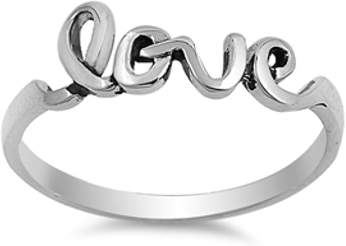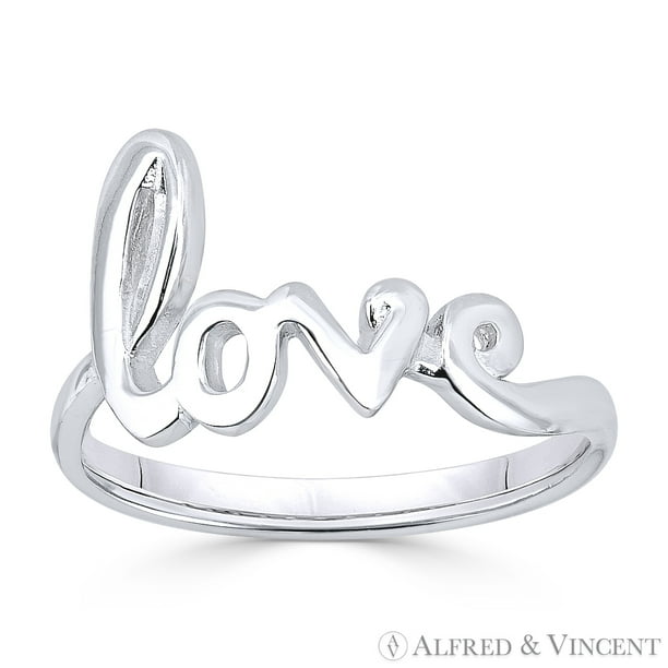 Amazon Com Sterling Silver Love Ring Script Cursive Writing Jewelry